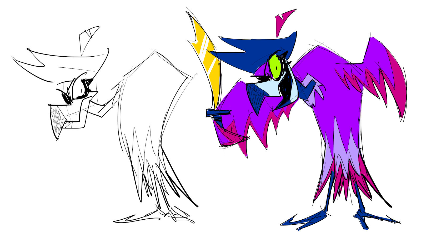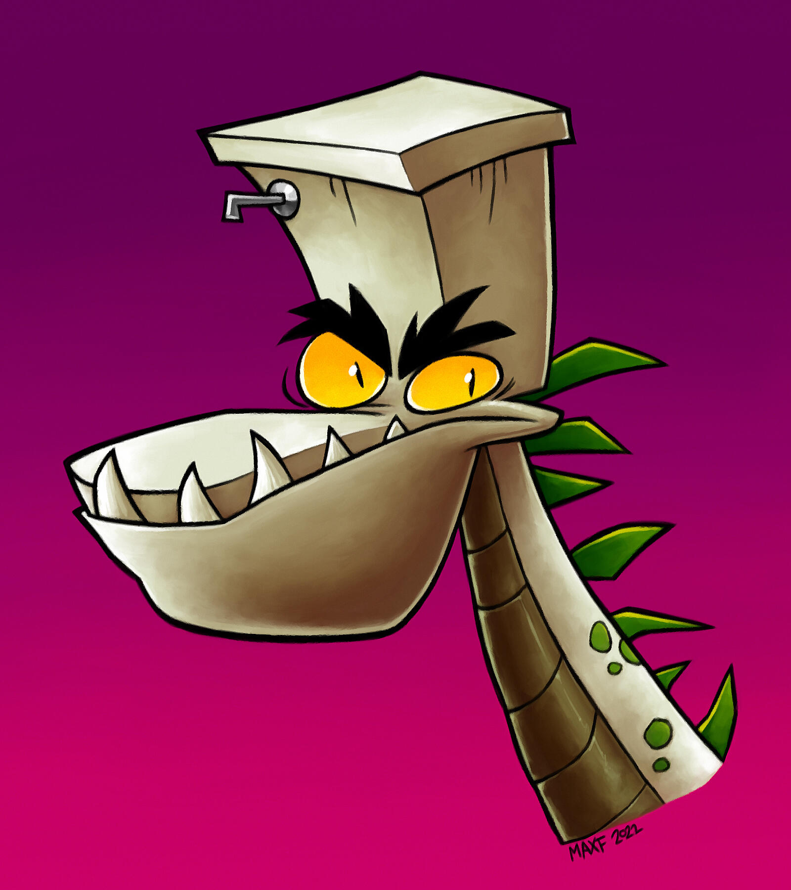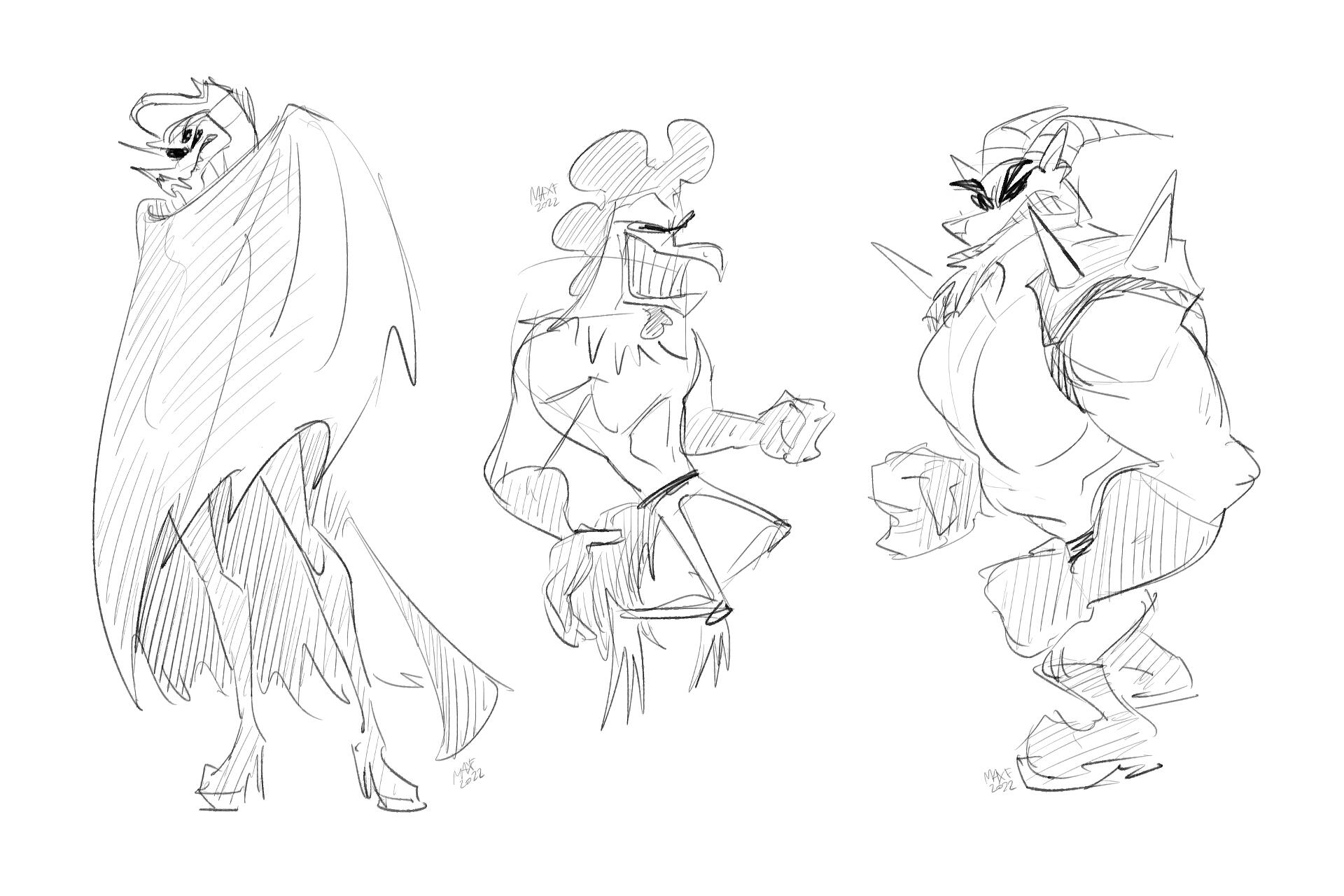 Character design on ANTONBLAST was highly collaborative and almost every design in the game was a combination of takes from different team members. One of my duties was specifying the final looks for Annie and Satan, although it took the combined effort of the whole team to produce all the ideas I blended together for their final designs. Some designs where I played a more foundational role include the Jewel Ghoul heart, Bonny (the parrot pirate), and Slackjaw (the Glasshouse koi fish monster). I also really enjoyed working on the Freako Dragon, even though we decided to go in a different direction for his final design from what I submitted. For many of the common enemies, I did subtle refining to exaggerate certain elements and bring them in line with the game's bold angular art style.