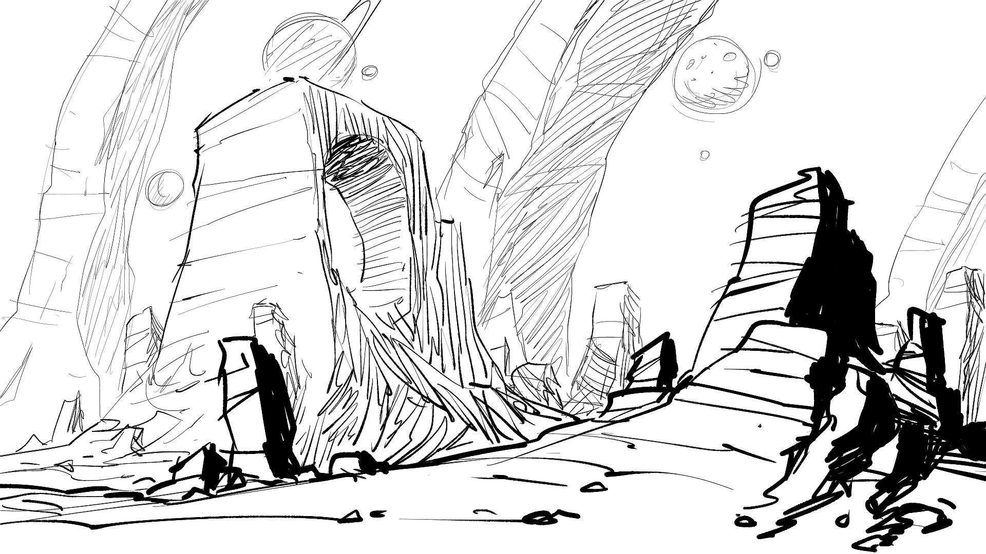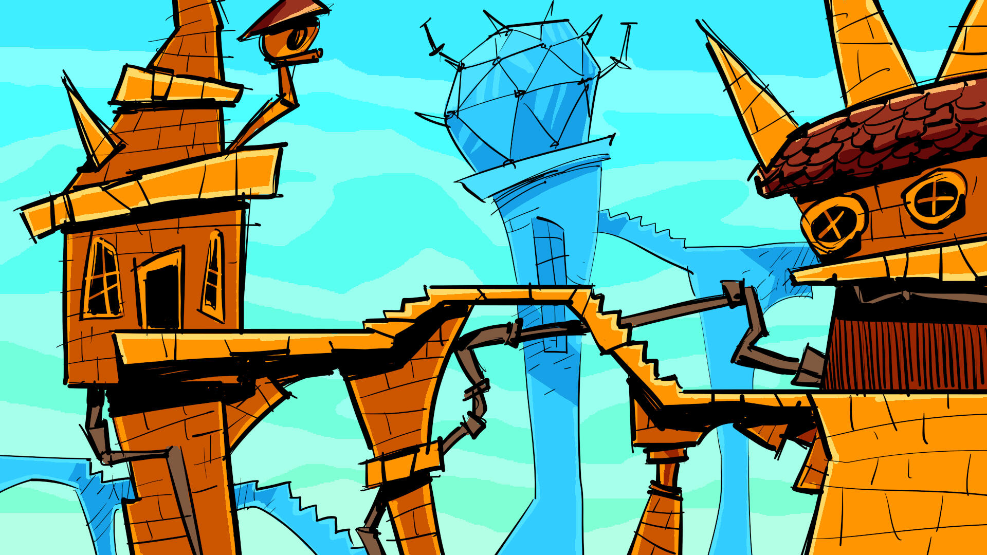 Before starting on level design or art assets, we explored the game’s worlds through tons of concept art, ranging from rough inspirational sketches to clean concepts imitating in-game perspective. In total I produced over 300 environment concept pieces for the game. Some pieces below were made before we had the final art style in place, leading to some variation in shape language and level of detail.