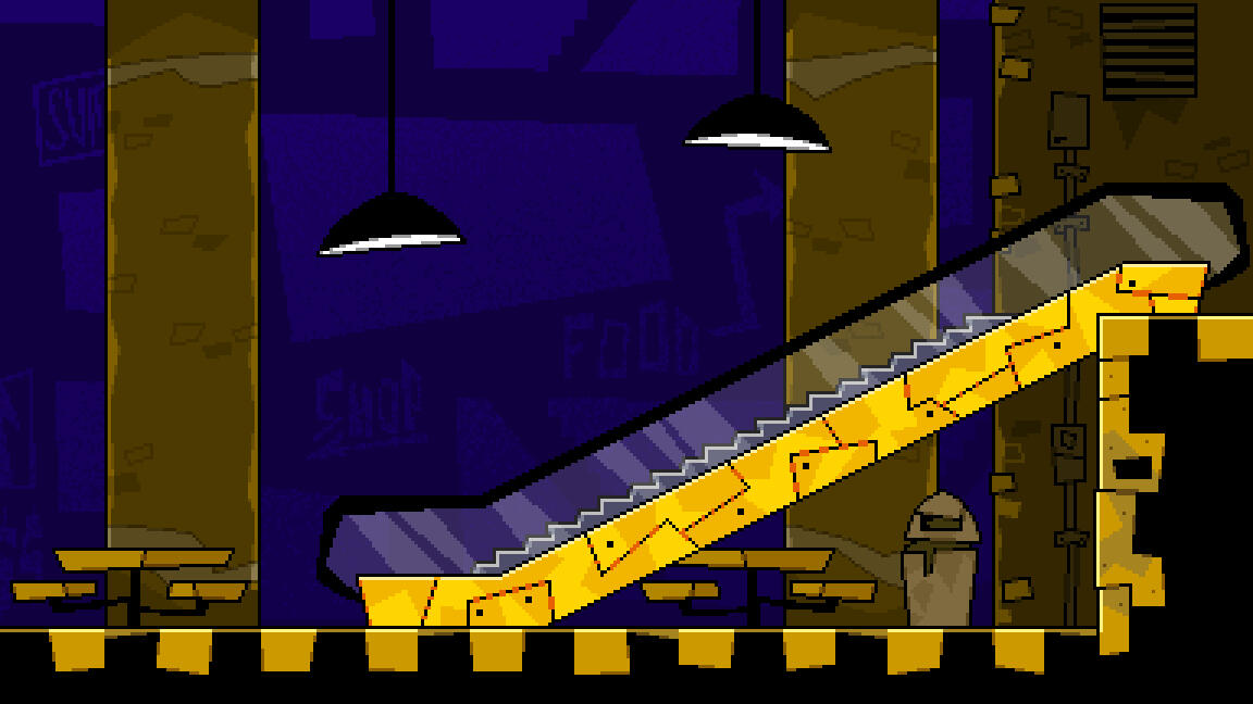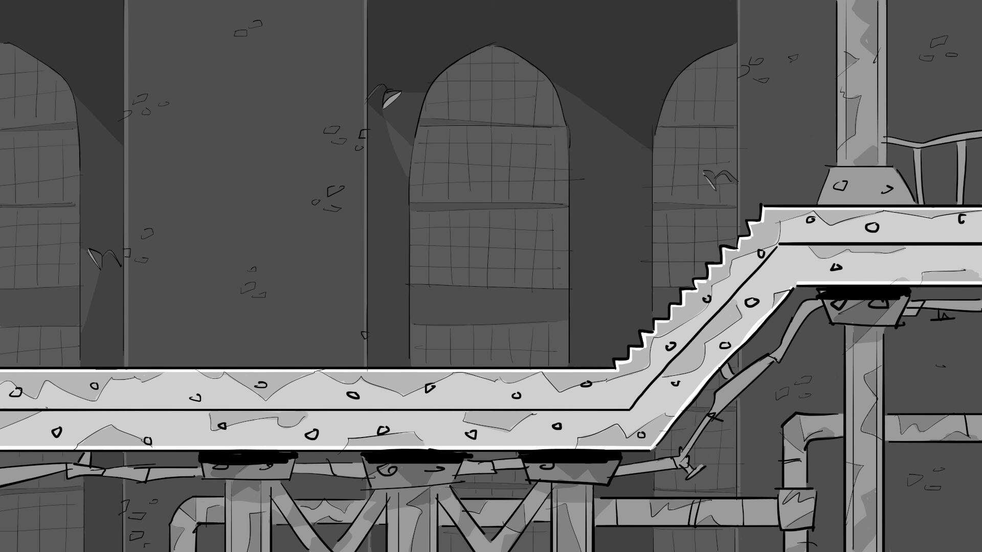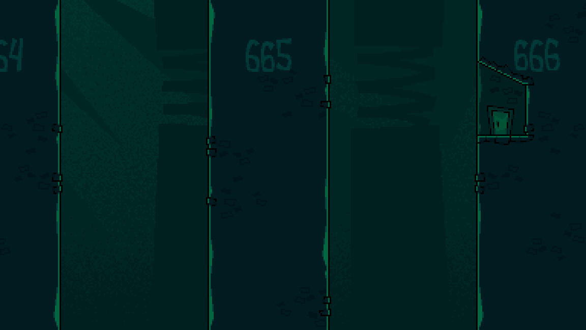 The Big Bath is set in a haunted bathhouse, whose layout changes behind the player’s back to create a confusing, unpredictable space. I wanted to leverage the unsettling elements of liminal spaces within the constraints of a 2D action-platformer to create an eerie, desolate atmosphere that would stand out from the game's other levels. As the level proceeds, it becomes more abstract, with infinitely-looping hallways and floating pools of water. We achieved the spatial tricks in the level via a combination of directly rearranging the level geometry off-screen, and silently teleporting the player to near-identical copies of rooms. The latter method required some of the level’s rooms to be conjoined within the game engine in ways that aren’t apparent while playing, in order to teleport the player smoothly without the engine loading or offloading discrete rooms.