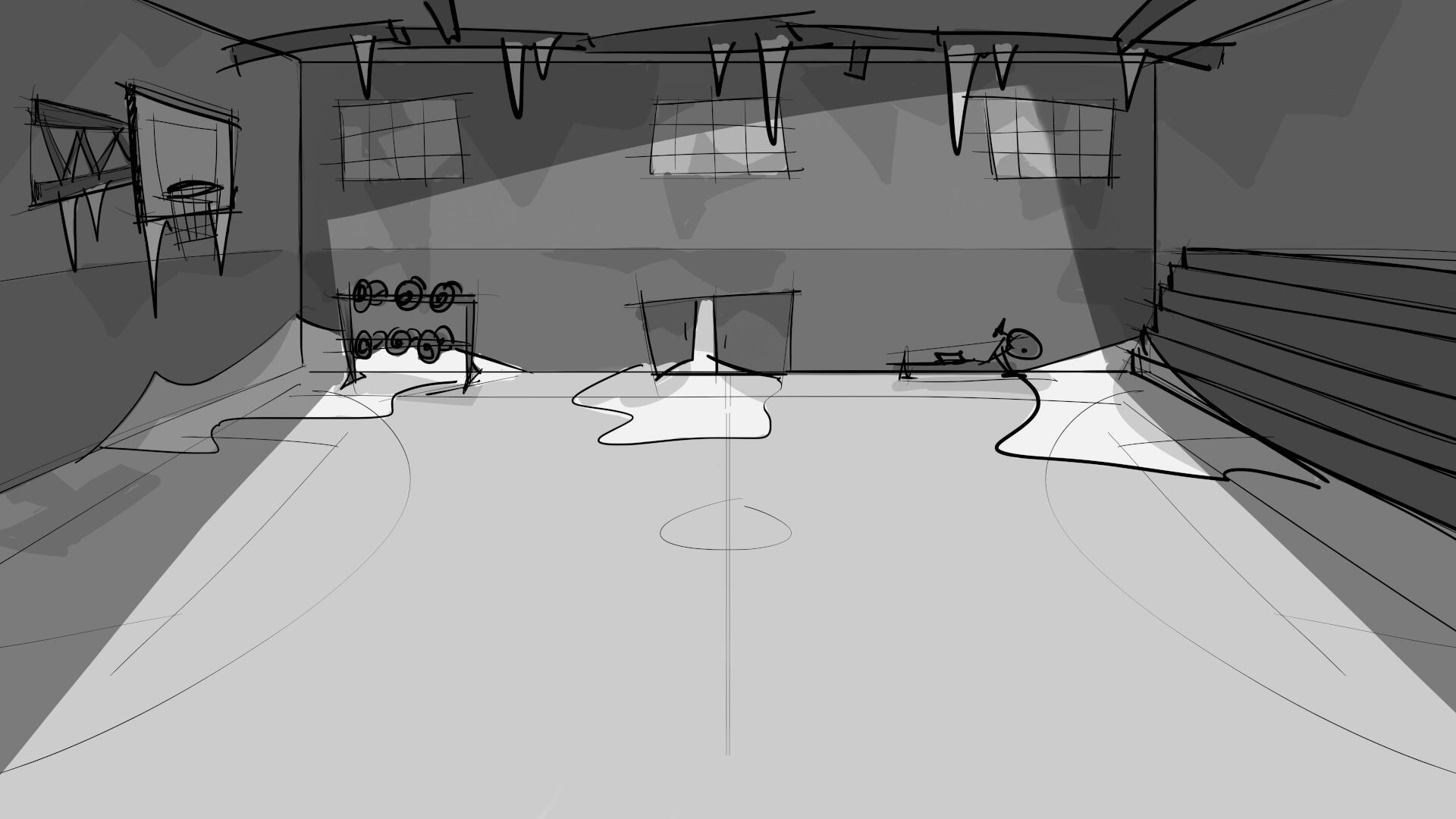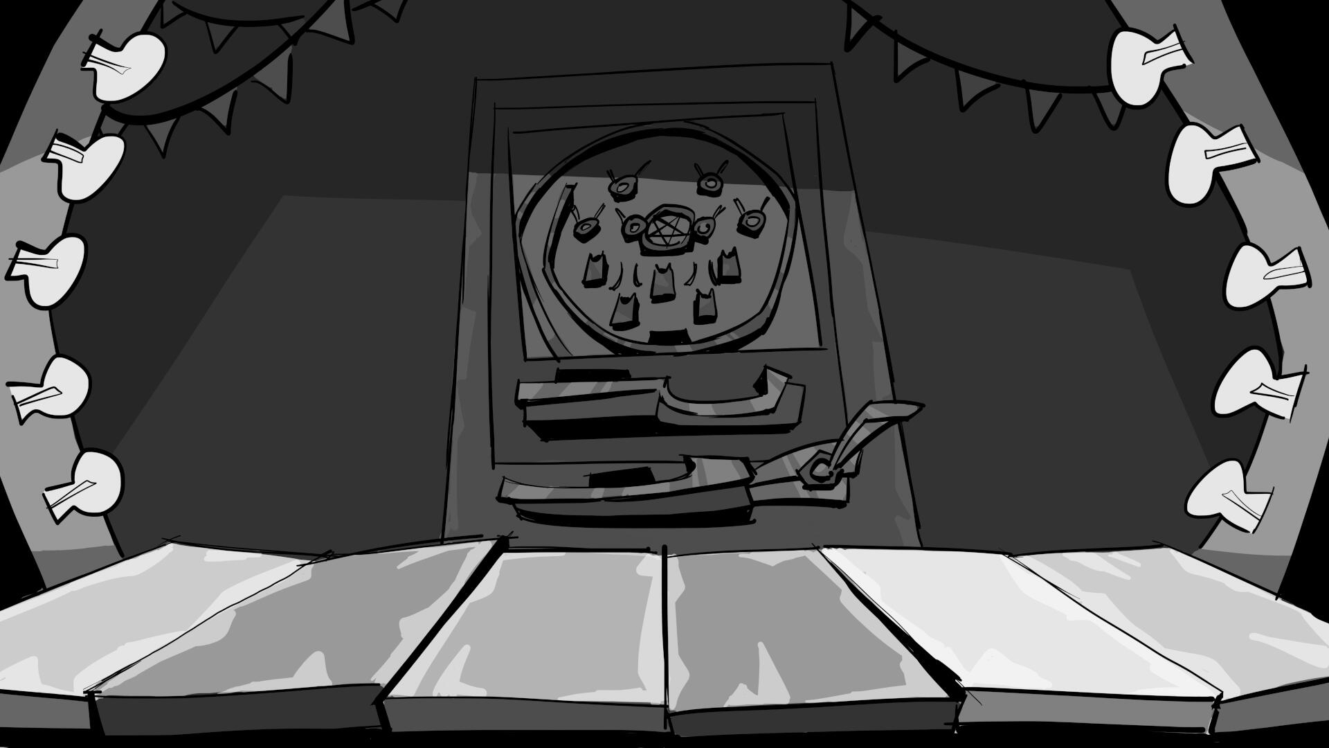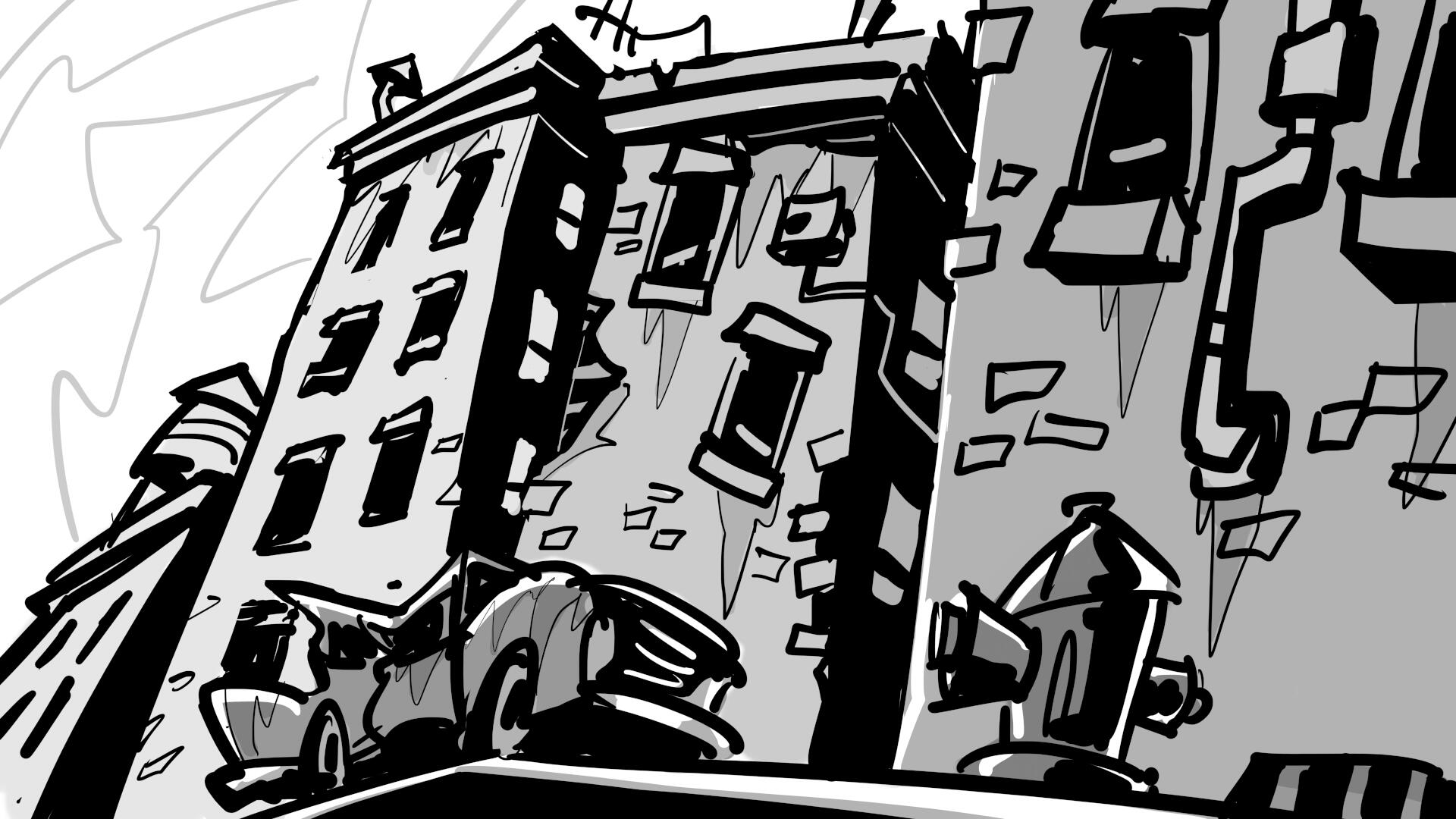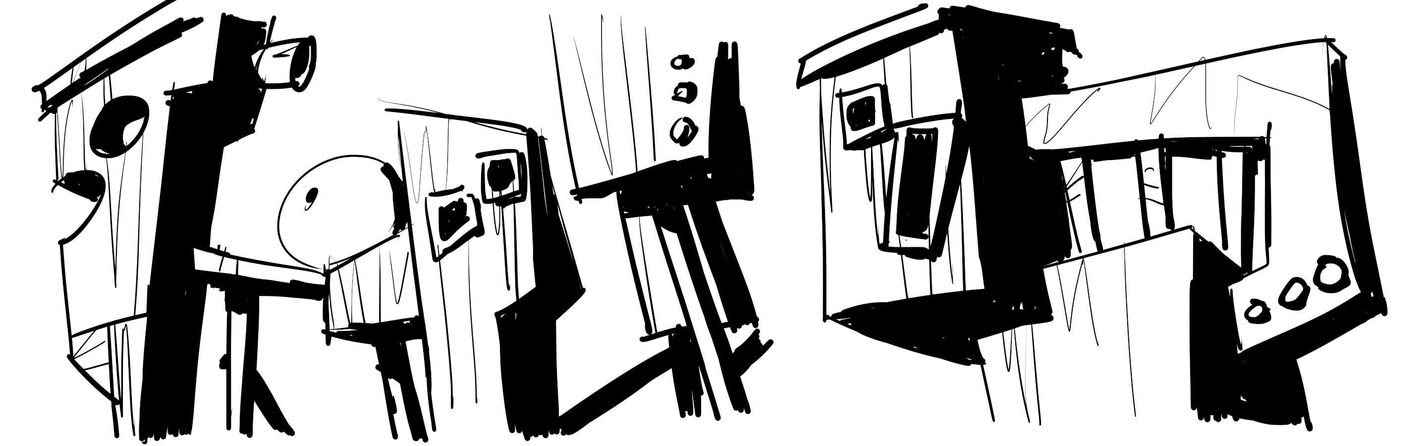 Responsibilities for storyboarding different cutscenes were shared among team members, and I ended up with (begged for) the task of storyboarding the opening cutscene. These are my original thumbnail storyboards for the second portion of the cutscene, set in Anton and Annie's apartment, which I adapted from a provided script.